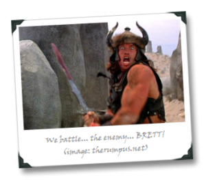 And when it comes to enemies like Brett, my sentiments lie with the bard himself; by which I mean, of course, Conan the Barbarian, when he was asked what was best in life:
